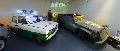 On display are the various stages of development of the East German people's car and its potential uses for camping or as a military vehicle. Also on display are rarities such as the Trabant P70 with its wooden chassis, or the racing Trabi, or couple of military versions