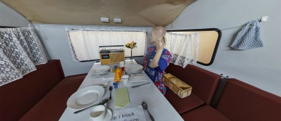 There are also tourist corner in the Trabi Museum Berlin, where you can see how people of Easy Germany spent theie holidays. There you can see the panorama inside the very popular QEK Junior camper with things from 80s.