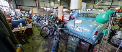 Now the Museum of Industrial Culture is a big warehouse in which you may find various stuff: from cars and motorcycles to sewing machines and phonographs. Everything is scattered all over the place in rather chaotic manner, so it's quite difficult to pass between exhibit items. Among the debris of items you may find themed areas - radios, laptops from the 90s, film projectors and boat motors. Each area is under a supervision of a collector who works with the museum and brings here his findings. The collection is constantly updated and transformed. It seems that even the workers of the museum have no idea how much items the museum displays.