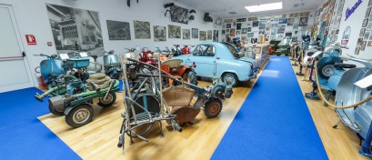 An interesting fact: in his museum, Mauro Pascoli collected lots of different Vespa models, built in different countries under a special license, such as British Douglas Vespa, German Hoffmann Vespa, French ACMA Vespa, and Vespa Allstatte from USA. You can even meet a Russian copy, which is called Vyatka VP-150. The second floor of the building hosts a tiny collection of agricultural machines with Piaggio engines.