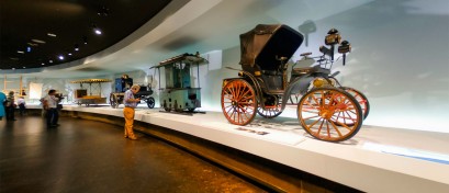 The museum offers over 160 showpieces, which include lots of different vehicles from different periods of the company’s history. All the 7 floors contain the full Mercedes history, including different showpieces and lots of interesting facts. The tour begins on the 7th floor, which holds the earliest exhibit items: cars, trucks, boats, engines etc.