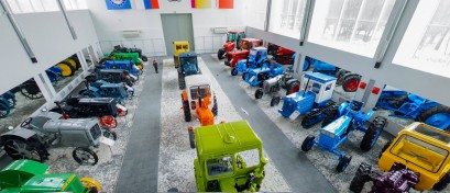 В экспозиции музея - около 500 коллекционных моделей образцов тракторной техники начала и середины ХХ века отечественного и зарубежного производства. Фонд музея насчитывает более 5000 редких предметов. Музейная экспозиция состоит из следующих разделов: «От сохи до самодвижущихся устройств», «История трактора от паровых машин до мощных дизелей», «Развитие отечественного и зарубежного тракторостроения», «Производители промышленных, лесных и сельскохозяйственных тракторов», «Трактор будущего».