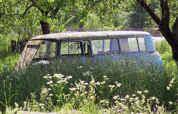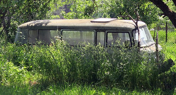А рядом два миркоавтобуса “Barkas” из уже несуществующего государства ГДР в таком же состоянии.