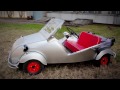 The Zapatilla was minimal indeed, with no doors or windows or reverse gear. The 1 cylinder, 197 cc, two-stroke motor produced 9 horsepower (7 kW), had a crank starter, and drove only the right front wheel. Braking was by an unusual three-point system involving the transmission and cable ties to the two rear wheels. One genuinely advanced feature was an all-aluminum body, although steel was later used.