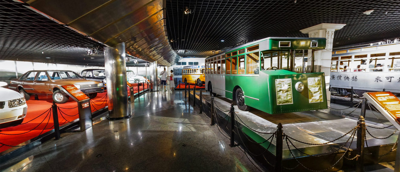 In the very first pavilion on the basement there is a small retrospective exposition of the urban transport vehicles ever running along the streets of Shanghai in different years from rickshaw to trolley bus. For the most part these are replicas or public transport models with skillfully made wax figures of trolleymen and drivers. Besides, real passenger cars of Shanghai automobile plant's production of different manufacturing years are presented here.