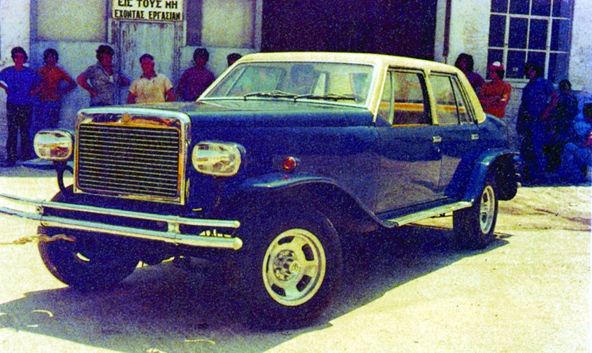 The automobile was built in 1974 within eight months on a steel chassis at the dockyards Neorion in the town of Ermoupolis on the island of Siros and had an aluminum body.