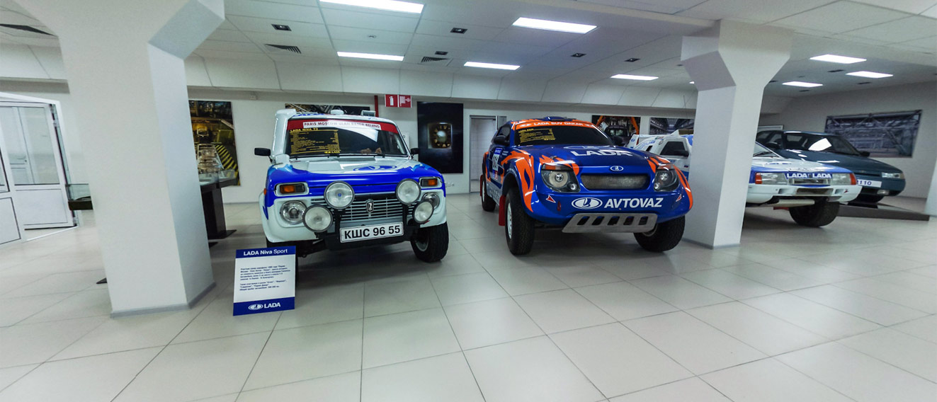 Посетители нашего виртуального тура смогут также познакомиться со спортивным прошлом марки. В музее АвтоВАЗа стоят легендарные Lada Niva T3 и Lada Samara T3, которые очень успешно выступали на сложнейших ралли-марафонах Париж-Дакар и Париж-Пекин. Рядом с ними - спортпрототип Lada Raid, так и не вышедший на трассу. Обращаем ваше внимание на то, то наш виртуальный тур передает состояние музея на 2013 год, сейчас состав экспонатов немного отличается.