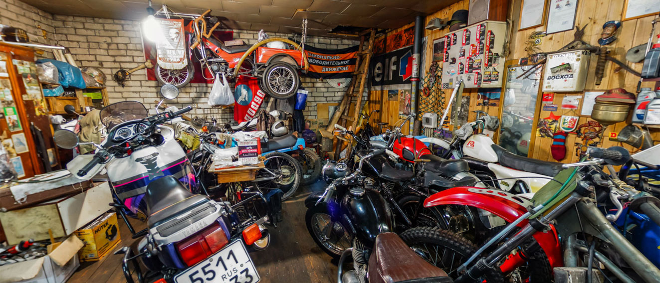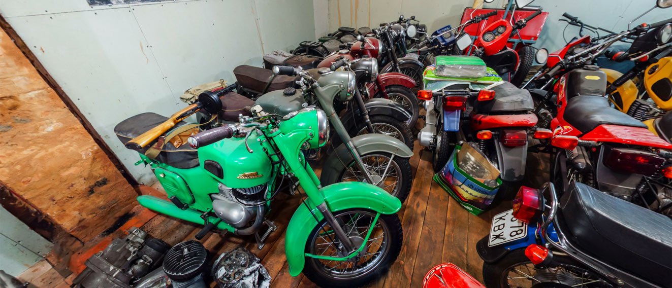 Вся техника хранится в нескольких гаражах. Николай мечтает получить статус музея для своей коллекции, так что пока посмотреть его мотоциклы можно по предварительной договоренности или в нашем виртуальном туре.