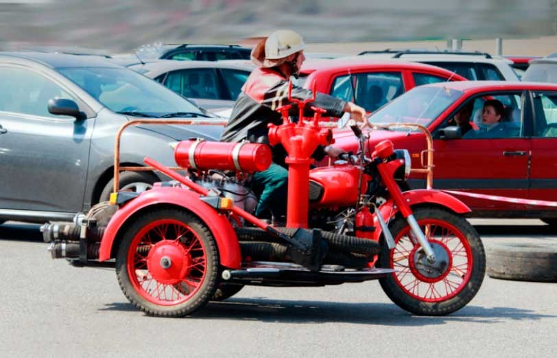 Вместо коляски на мотоцикл пришлось приделывать специальную площадку для пожарно-технического вооружения. Пришлось отойти от аутентичности, ведь они хотели сделать не музейный экспонат, а боевую аварийно-спасательную единицу. Немало сил ушло на восстановление пожарной мотопомпы МП-800, которую собирали из трех неработающих.