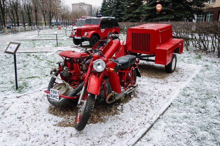 Этой идеей пожарники вдохновились, увидев подобную технику в интернете. Например, такой агрегат стоит в Музее пожарной техники в г. Иваново. Здесь, правда, более поздняя модификация "Днепр 157 П" 1981 года.