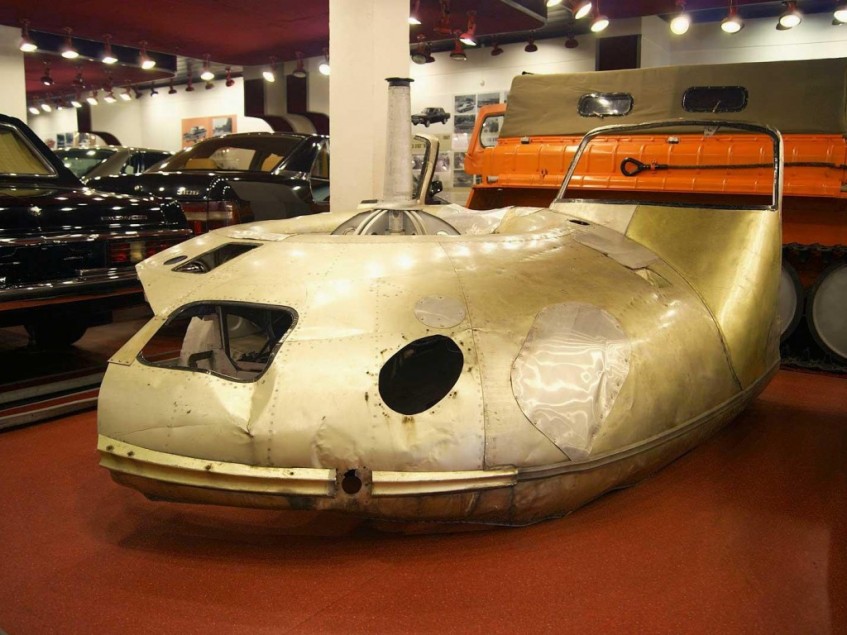 Пройдя черный "членовоз" ГАЗ 14 натыкаемся на какую-то летающую тарелку . Она то зачем здесь в музее ГАЗа?