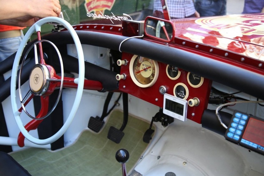 Оригинал воссоздан, конечно, не полностью, так как оригинального гоночного двигателя, пришлось поставить 2.5-литровый от ГАЗ 24. Коробка передач здесь 4-ех ступенчатая, в отличии от трехступенчатой оригинальной.
