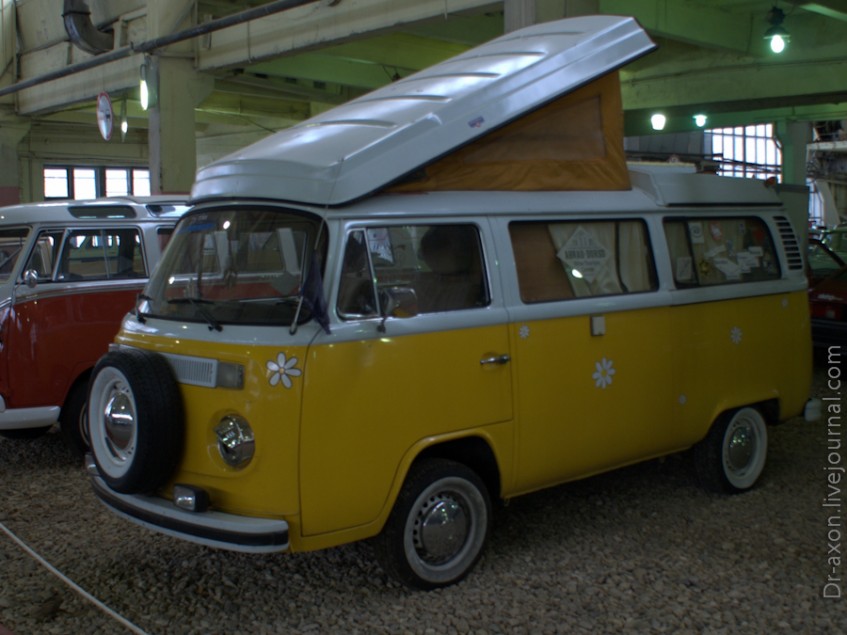 Желтый "Хиппимобиль" VW Transporter со спальным местом на крыше, мечта любого туриста "дикаря" при поездке на море.