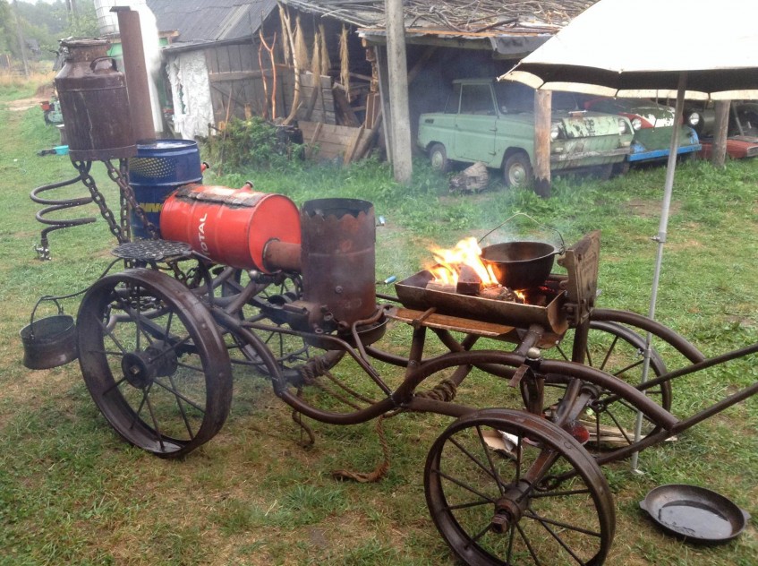 Похоже это сельский самогонный аппарат на гужевом ходу ))) .