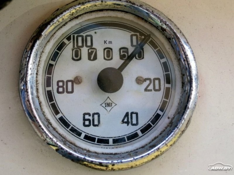 Спидометр очень винтажный и совмещен с одометром, на котором стоят цифры 7050 км. Это за целых 60 лет !?