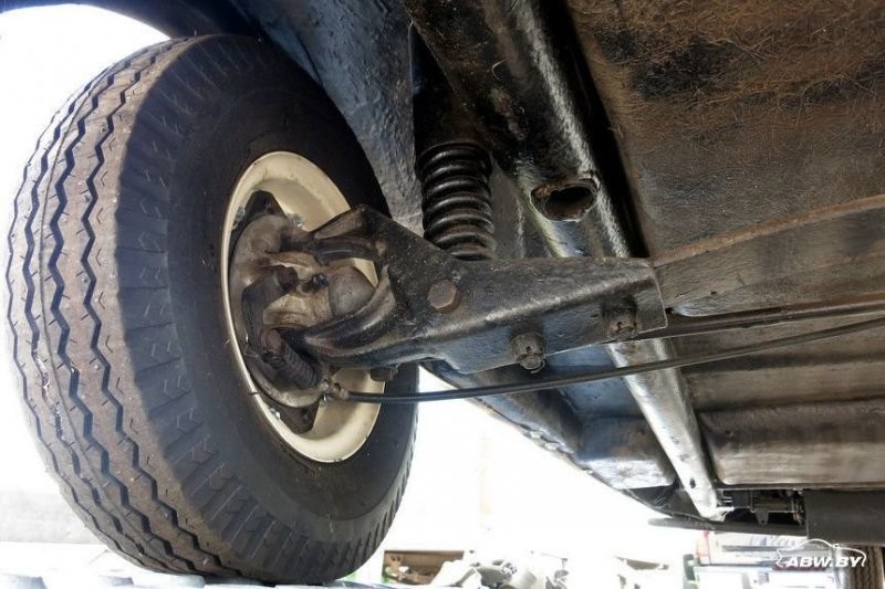 Тормоза механические, очень примитивное рулевое управление без усилителя и даже без червячного или реечного механизма.