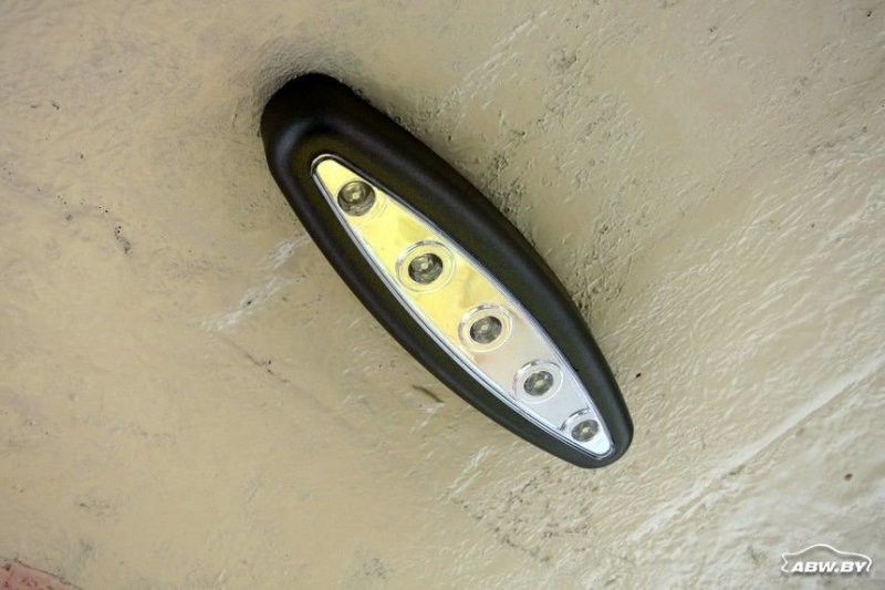 Светотехника здесь выполнена в стиле "минимализм" ( а что должно быть у микроавтомобильчика!): две фары спереди, один фонарь сзади, два повторителя поворотов, расположенных по бокам у самой крыши и катафоты в "плавниках".