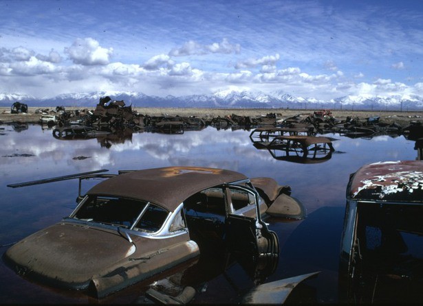 Некоторые водители в Огдене, штат Юта, несомненно путают этот пруд с автостоянкой. В воде припарковано на вечно несколько старых автомобилей.