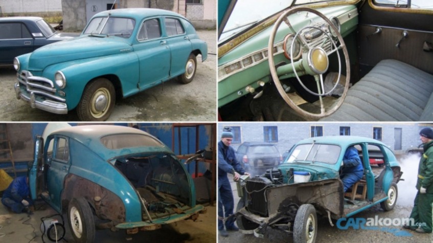 А начиналось все с найденной в старом гараже Победы 1957 года вот в таком состоянии, когда она буквально вросла в пол гаража.