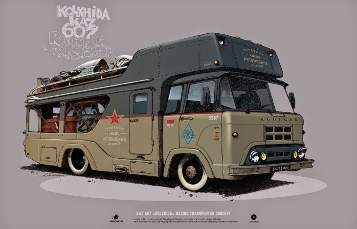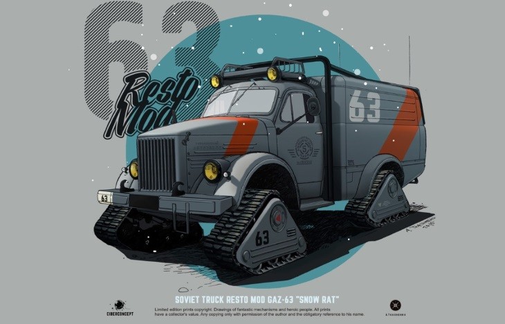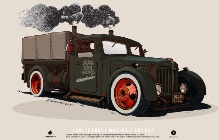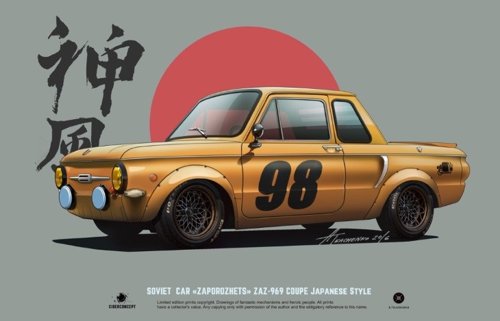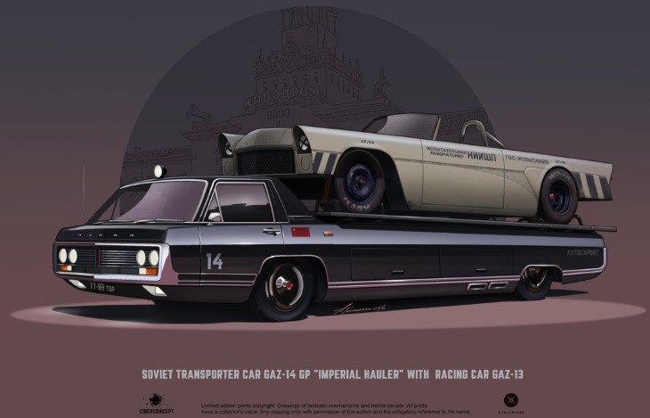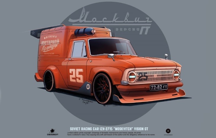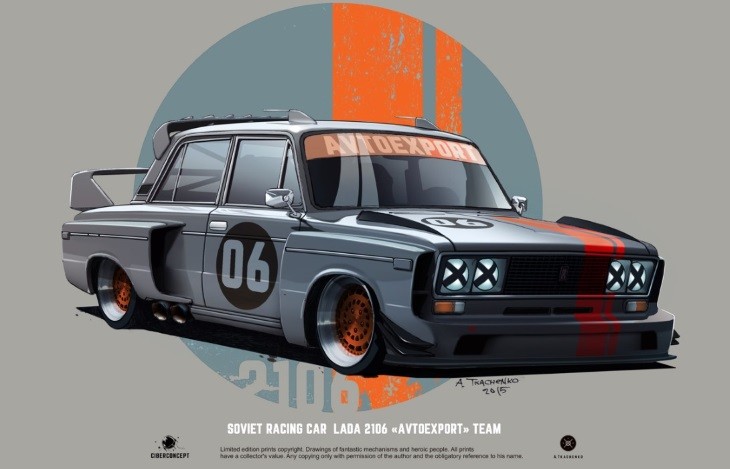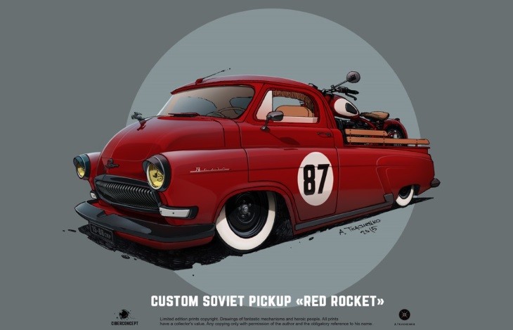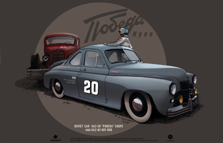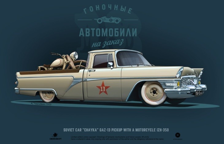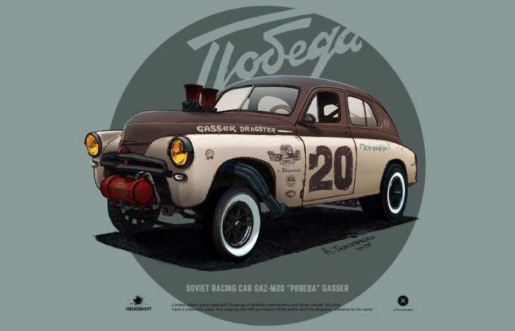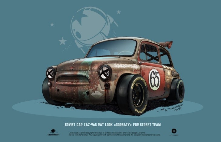 Молодой художник их Нижнего Новгорода Андрей Ткаченко создает свою автомобильную параллельную реальность. Он рисует необычные амплуа знаменитых советских раритетных автомобилей, которые выглядят очень интересно и свежо.