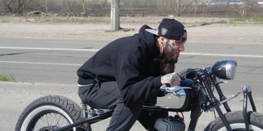 С мотоциклистом байк смотрится очень стильно. В движении мотоциклисту приходится сгибаться в ретро-позу, что усиливает эффект старения.