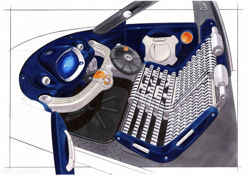 В интерьере этого концепт-кара присутствовали одни квадраты: и приборы, и вставки на сиденьях, и кулиса рычага КП, и даже руль с квадратной же ступицей.