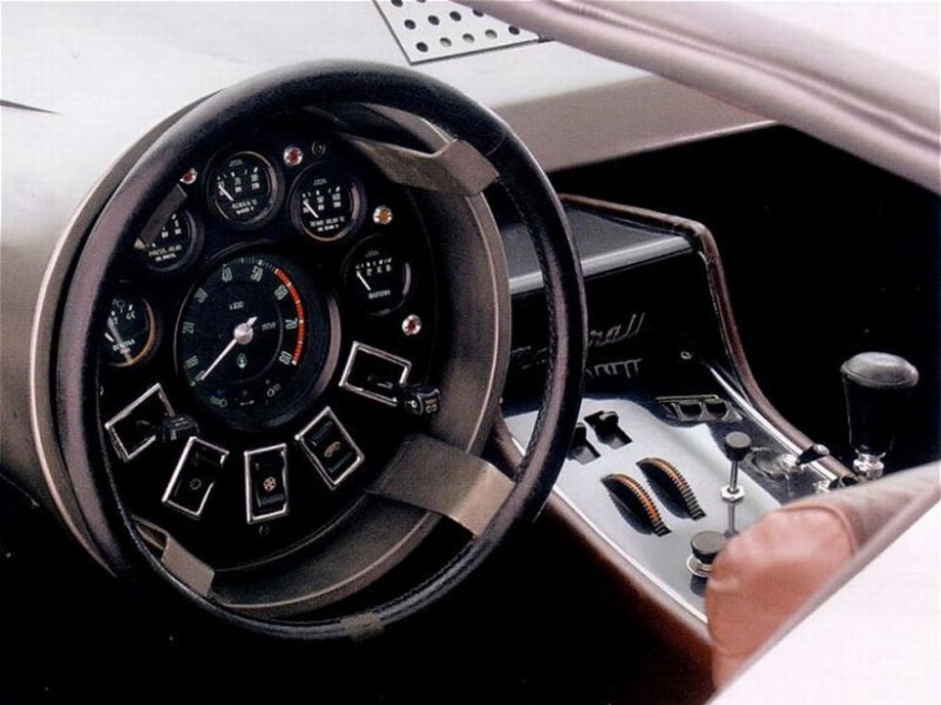 Автомобиль, созданный великим Джорджетто Джуджаро в 1971 году, имел очень необычное рулевое колесо. У него также была неподвижной ступица, в которой расположилась панель приборов целиком и целую кучу контрольных ламп и переключателей.