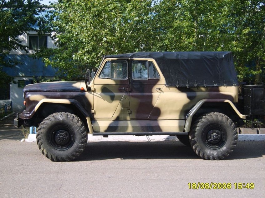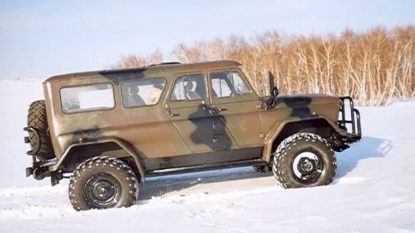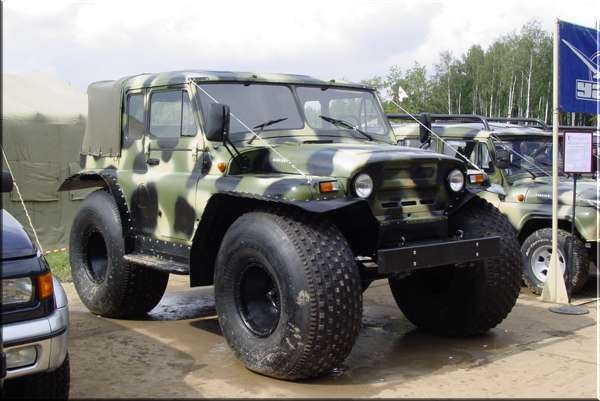 Эту версию с расширенной коле до 1,6 м и увеличенным клиренсом до 30 см УАЗ представил в 1999 году. Здесь были применены редукторные мосты, пружинная подвеска спереди и рессорно-листовая сзади.