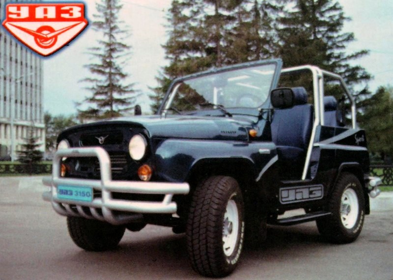 Первый прототип короткобазного козлика УАЗ-3150 "Шалун" собрали в 1999 году. Его рассчитывали применять для активного отдыха. Автомобиль имел длину менее 2 метров, кузов обладал мощным каркасом безопасности и отличался отсутствием дверей.