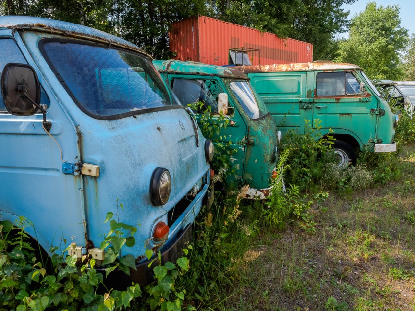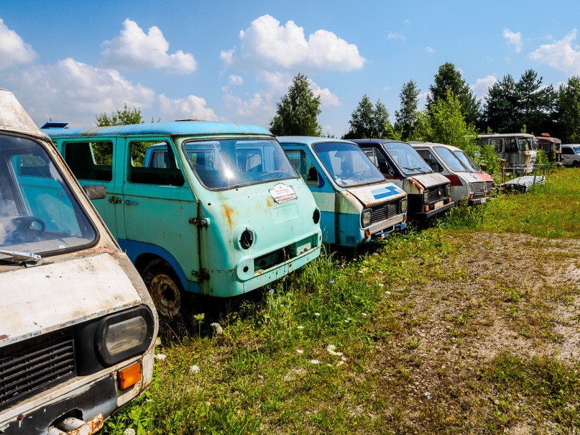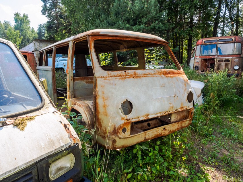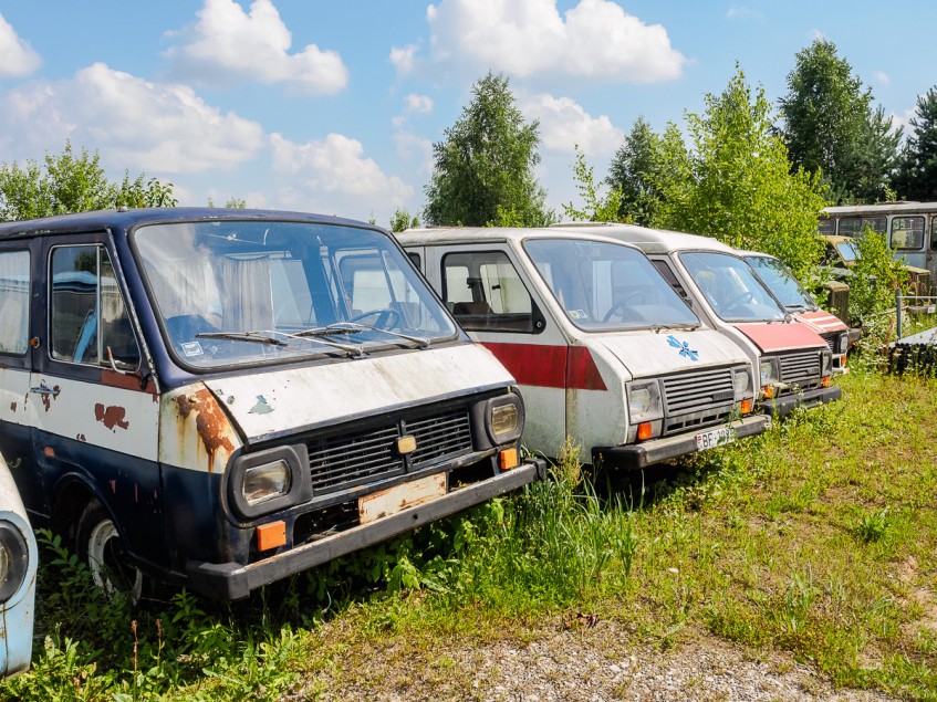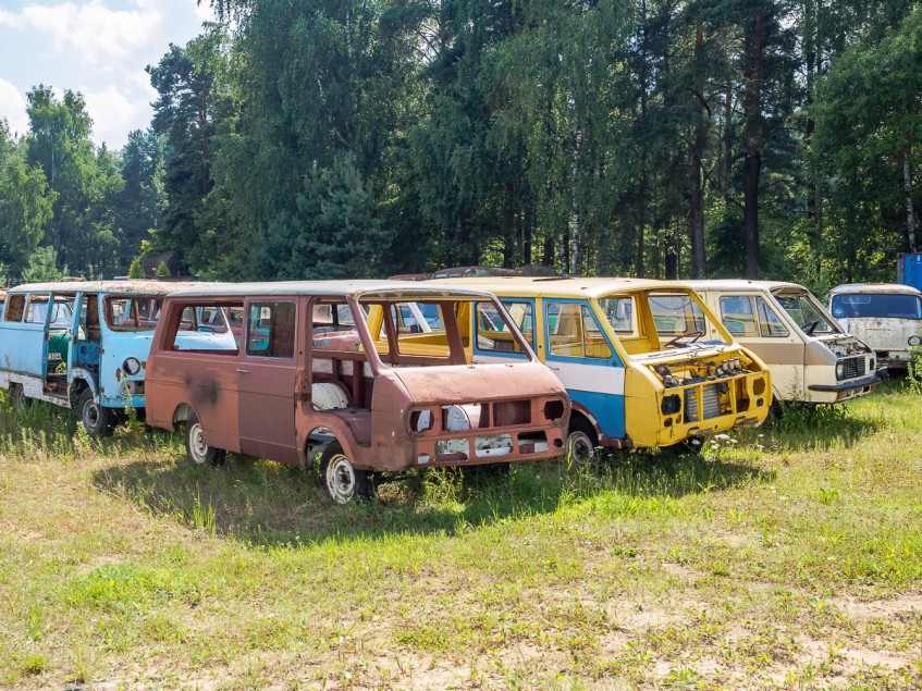Десятки микроавтобусов РАФ ржавеют на заднем дворе латвийской компании