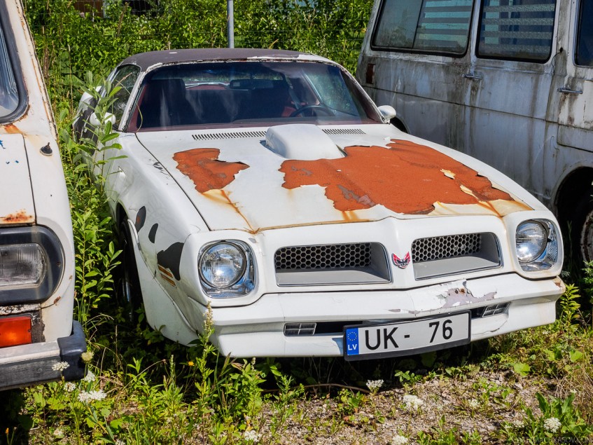 Неожиданный здесь Pontiac Firebird Trans Am года около 1976-ого, который, мы надеемся, ожидает очереди своей реставрации.