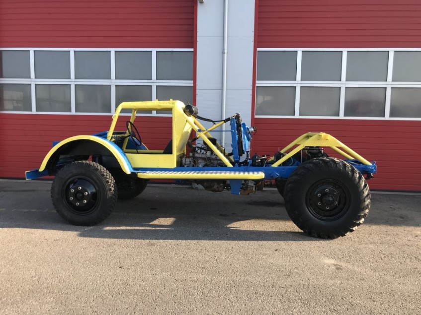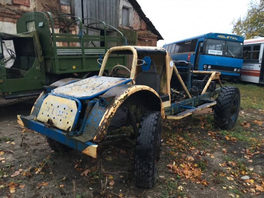 Вот этот непонятный экспонат смотрится очень интересно: это или грузовая багги, или какой-то испытательный стенд для проверки автомобильных агрегатов.