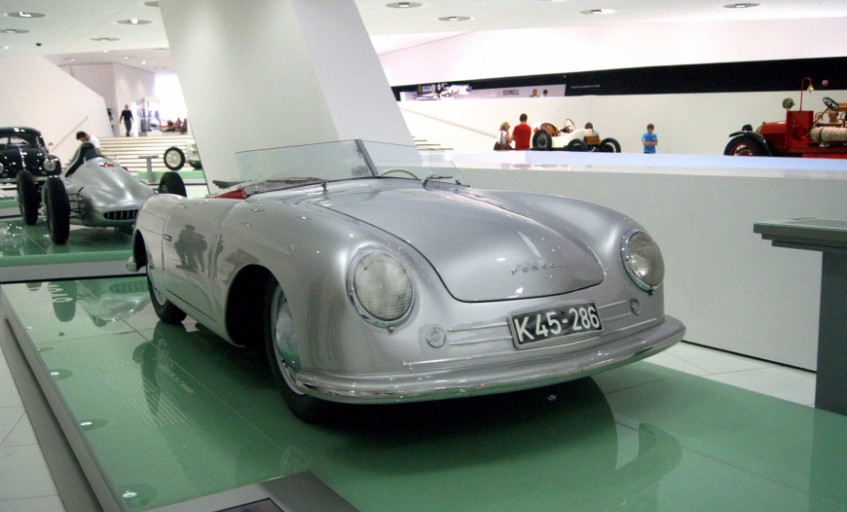 Первый Porsche был произведен в городе Gmünd, в Австрии . Это был двухместный родстер с центральным расположением двигателя. Четырех-цилиндровый боксер установлен перед задней осью и имел мощность 35 лошадиных сил. На нем были установлены коробка передач и некоторые компоненты подвески от Volkswagen, но была увеличена мощность двигателя на 10,5 л.с. Его кузов был сделан из алюминия и имелась поддерживающая пространственная рама .