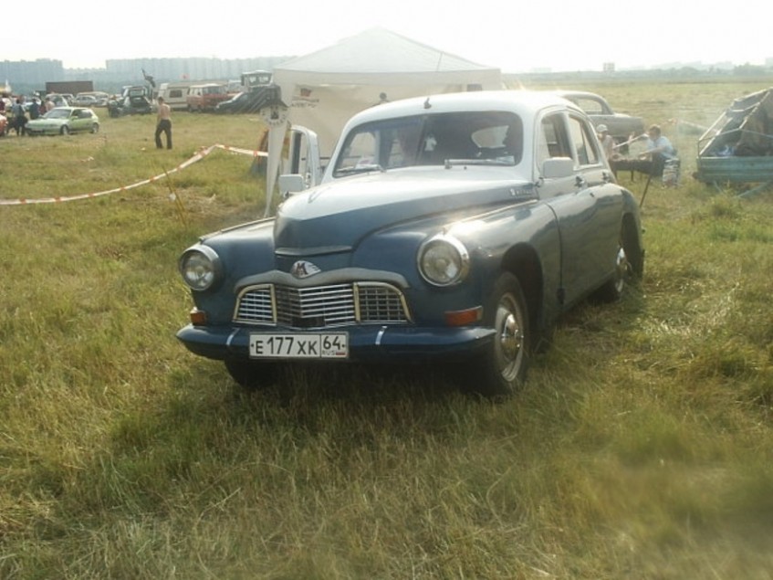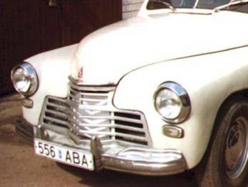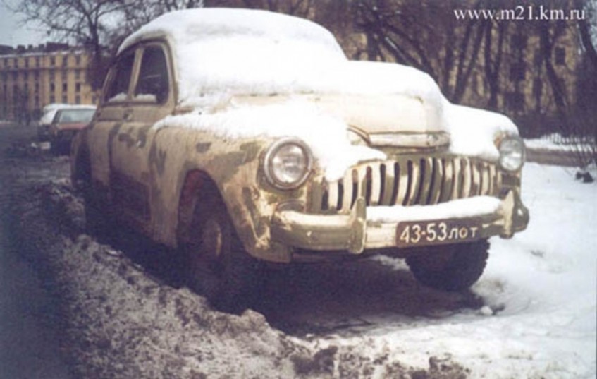 А здесь очень радикально поиздевались над оригинальным видом Победы, "приварганив" (нет другого подходящего слова к этому действию) очень широкую решетку от ГАЗ-24 и заменив оригинальное стекло на "Москвичевское".