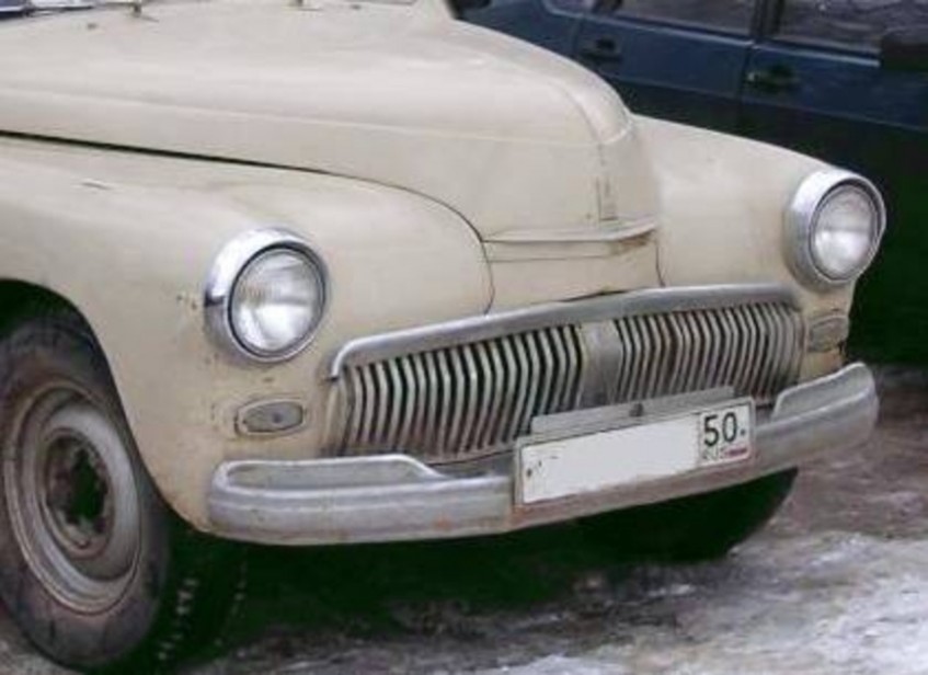 А вот так облагораживали Победу решеткой от более престижной модели "ЗиМа". Хотя, конечно, найти в качестве замены отдельно "ЗиМовскую" решетку в те времена была та еще задачка. Наверное, ее можно было найти в Горьком на заводе или в каком-нибудь правительственном гараже при списании чиновничьих лимузинов.