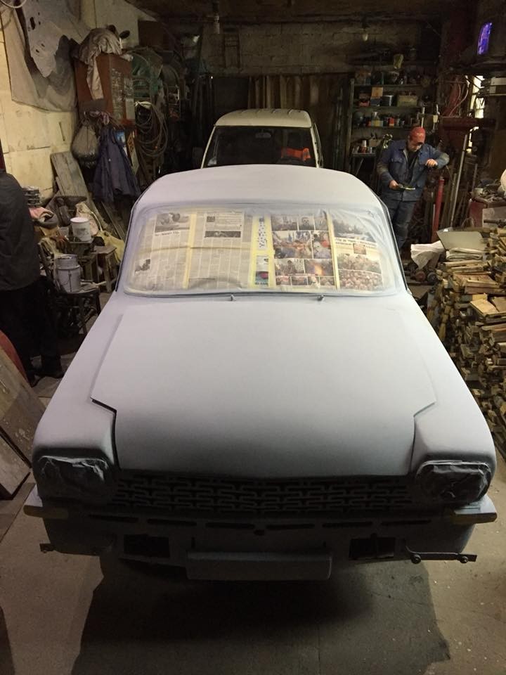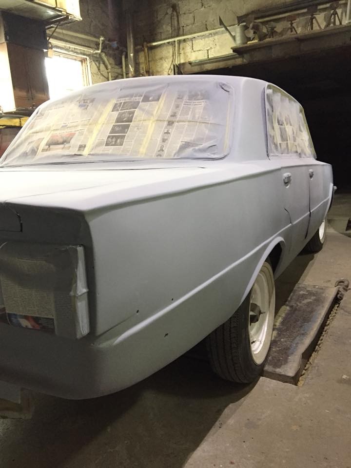 Как можно видеть на фото, уже проведены кузовные работы и автомобиль покрыт грунтовкой.