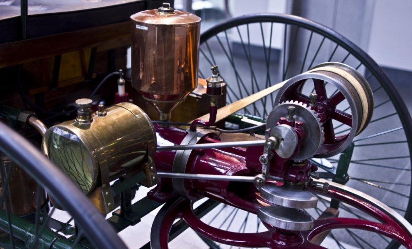 Benz Paten Motorwagen 1886 года. Один из первых автомобилей с бензиновым двигателем. Конечно же, это реплика. Максимальная скорость всего 15 км/ч.