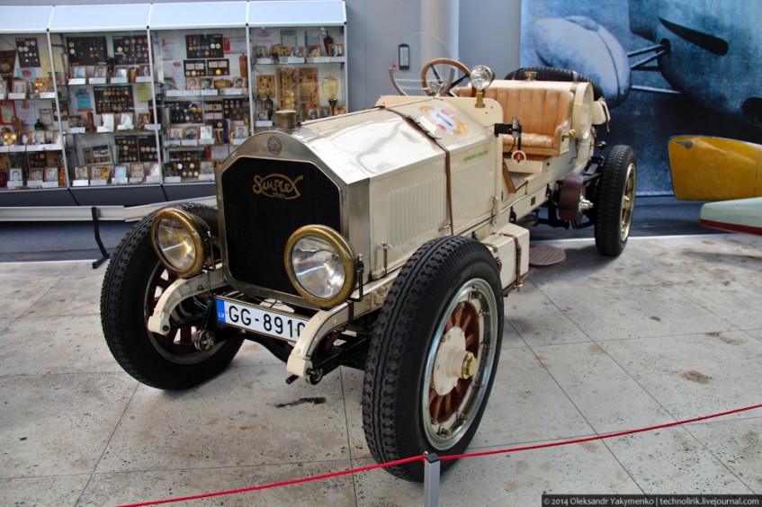 Еще один яркий экземпляр музейной экспозиции Рижского моторного музея - американский гоночный автомобиль начала XX века American La France typ 12 "Simplex". Сейчас American LaFrance выпускает пожарные грузовики, но в начале века компания выпускала небольшими партиями также и легковые модели. Гоночный Simplex был создан в Германии фирмой Daimler Motoren Gesellschaft. Немецкие автомобили небольшими партиями экспортировались в США, но после того, как страна подняла пошлины на ввоз автомобилей, немцы продали лицензию фирме American La France, а те в свою очередь модернизировали его и выпускали до 1914 года. Вот только объемы выпуска были мизерными: за четыре года American La France сделала всего 40 typ 12 "Simplex" из которых 10 были гоночными.