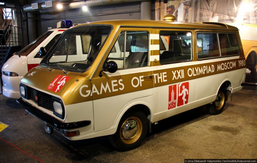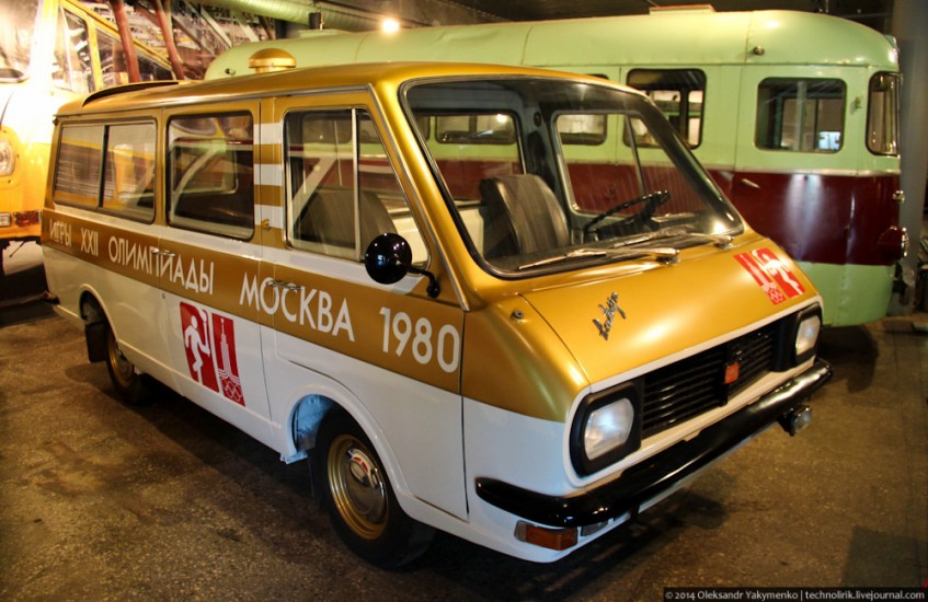 Встречает нас продукция Рижской автобусной фабрики. На фото - очень редкий РАФ-2907, созданный на базе обычного микроавтобуса РАФ-2203 "Латвия" для сопровождения олимпийского огня. Его сделали к олимпиаде 1980 года в Москве инженеры Рижской автобусной фабрики изготовили около 300 различных микроавтобусов для обслуживания олимпийских игр, в числе которых было несколько машин, которые должны были сопровождать олимпийский огонь из Афин в Советский союз.