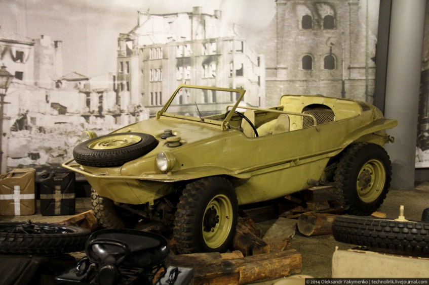 Плавающий автомобиль-амфибия Volkswagen Typ 166. Этот экспонат в военное время использовался в военных действиях на Сталинградском фронте.