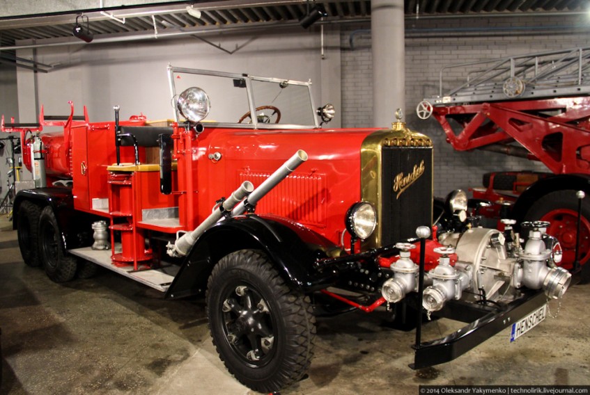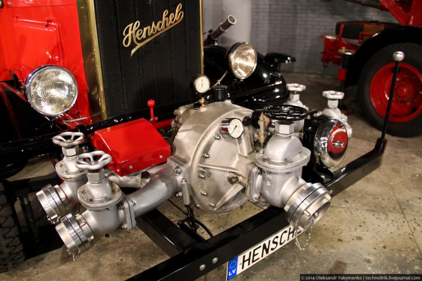 Шикарный немецкий пожарный автомобиль известного производителя пожарных машин Magirus на базе грузовика Henschel Typ 33 D1, 1941 года выпуска. Основное предназначение автомобиля - обслуживание военных аэродромов. Эта пожарная машина после окончания войны поступила в одну из пожарных частей Риги в качестве трофея. Использовалась также в съемках фильмов Рижской киностудии. Из 680 выпущенных машин до наших дней известно о семи сохранившихся.