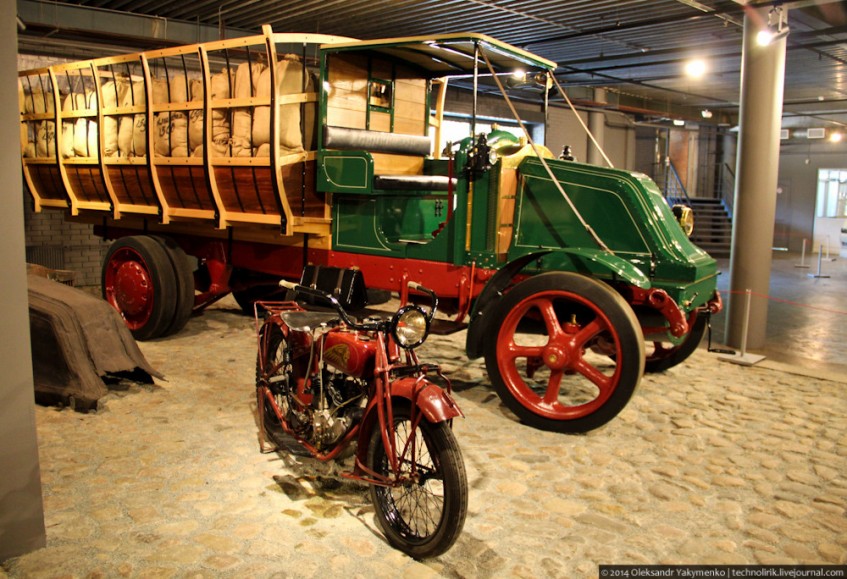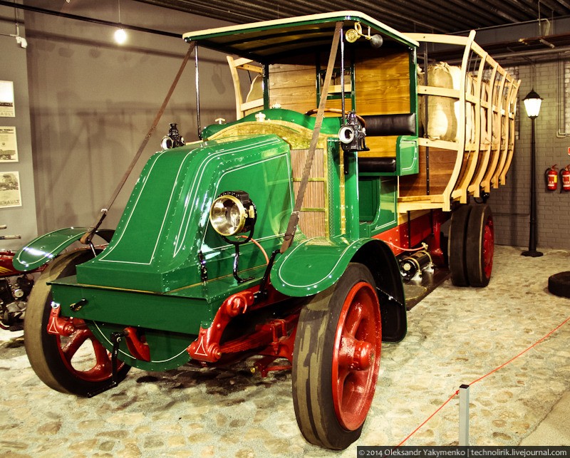 В завершение обзора третьего этажа Рижского моторного музея посмотрите на этот потрясающий Renault FU, 1919 года выпуска. Его грузоподъемность составляла 7 тонн, что было довольно много по тем временам. FU использовался армией для перевозки тяжелой военной техники и танков. На автомобиле установлены массивные чугунные колеса с цельными литыми резиновыми шинами.