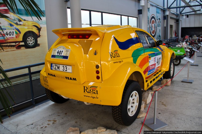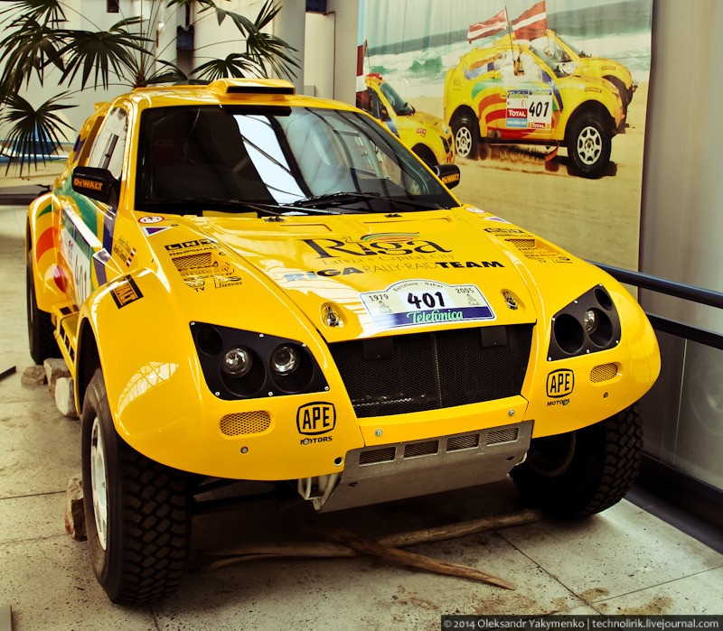 Желтый внедорожник был создан местной латвийской компанией OSC, занимающейся созданием раллийных авто с 1983 года, для участия в ралли Париж-Дакар. На проектирование и сборку ушло более года. Всего было задействовано 7 человек. В 2003 году внедорожник принял участие в престижнейшем ралли рейде Париж-Дакар.