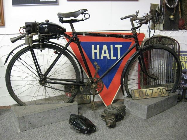 Вот еще несколько фото из музея. Вспомогательный велосипедный двигатель производства Rosengart.