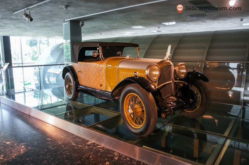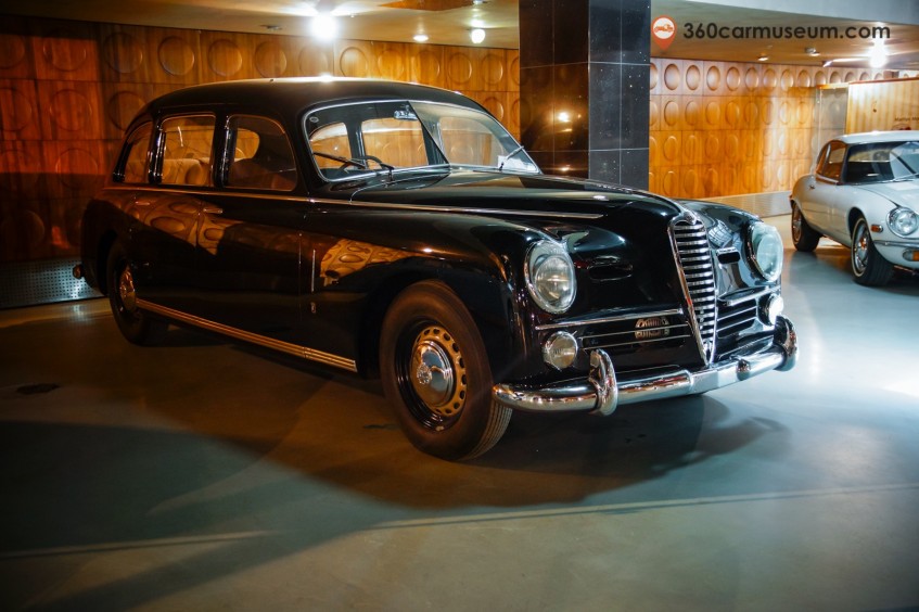 Во время Второй Мировой войны фирма Альфа Ромео главным образом производила грузовики. Послевоенное производство было начато с прославленной стилем и гонками модели 6C2500 с 2.5-литровым двигателем мощностью 90-110 л.с. В основном шасси 6C2500 одевали в спортивные кузова, однако в конце сороковых некоторые из длиннобазных шасси данной модели получили роскошные 6-местные кузова, в том числе от ателье Фарина. В музее стоял один из редчайших экземпляров модели 6C2500, поражающий огромными размерами.