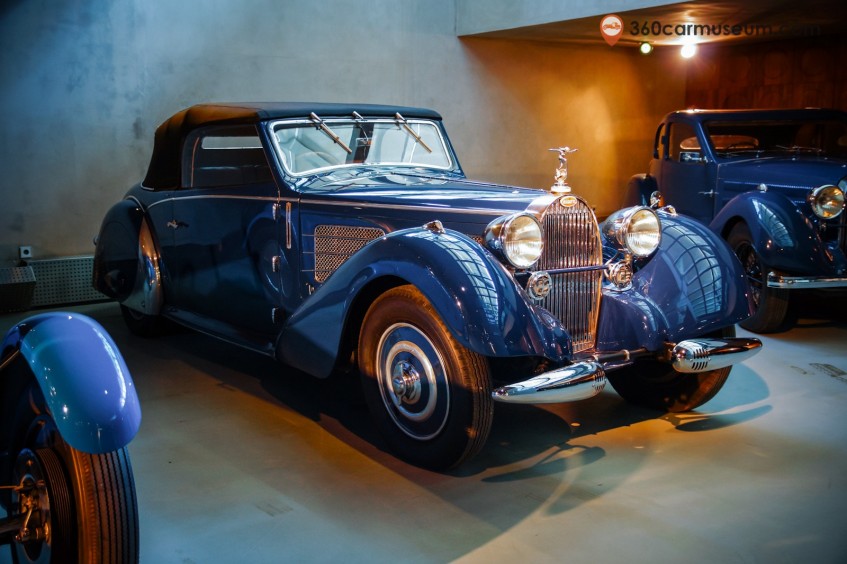 В Автовилле находились сразу три автомобиля Bugatti – все в великолепном состоянии! Например, этот Bugatti Type 57 Stelvio Cabriolet был впервые представлен в 1934 году и явился заключительным детищем Жана Бугатти. Данный экземпляр оснащен кузовом Stelvio Cabriolet эльзасской фирмы Gangloff, существовавшей с 1903 года и ставшей основным поставщиком кузовов для Bugatti.