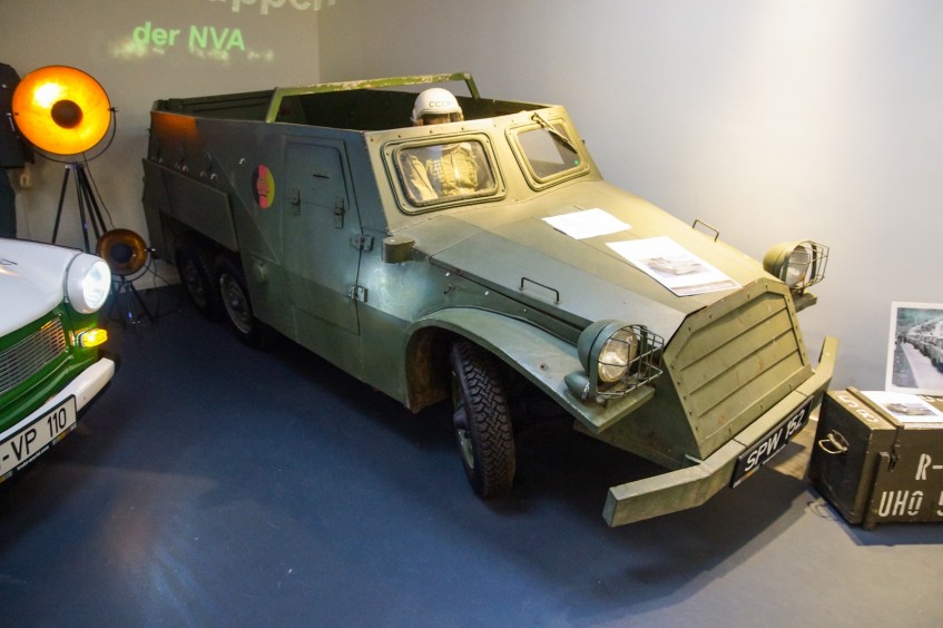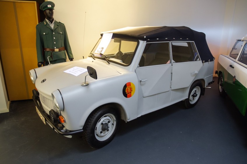При восстановлении автомобиль полностью разобрали, а затем заново собрали, окрасив в серо-белый цвет. Интересно, что на автомобиле было четыре слоя краски, и самый глубокий отнюдь не зеленый хаки, а серый. Технически это обычный Trabant с 26-сильным двухтактным двигателем.
