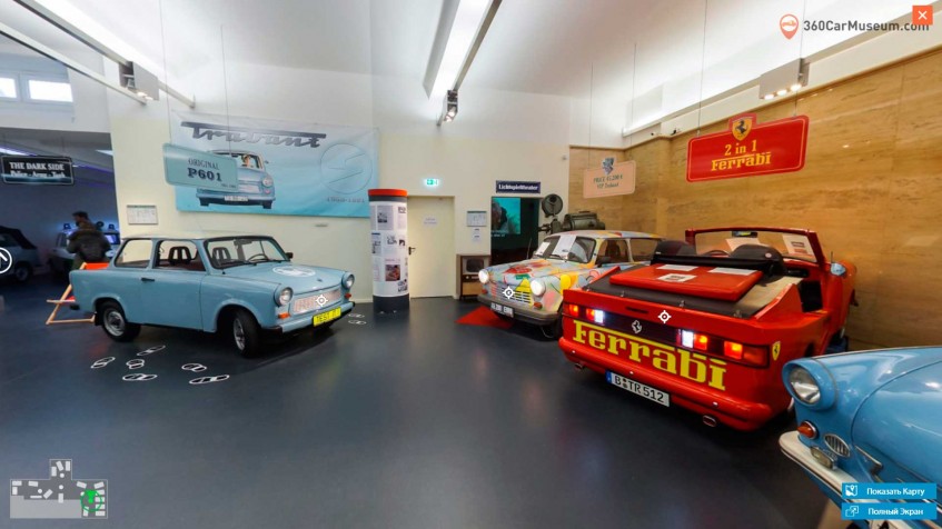 В музее хранятся модели различных годов выпуска, а посетители виртуального тура на портале 360carmuseum.com смогут проследить историю развития автомобилей Trabant от первых до последних моделей.