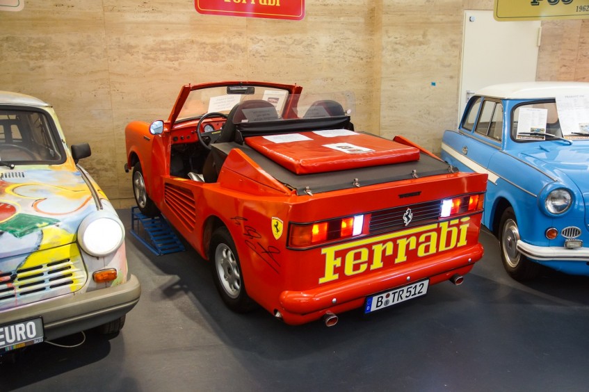 Вот это самомнение у владельца автомобиля! Этот симбиоз Trabant 601 и Ferrari 512, который получил имя Ferrabi, сделали в Магдебурге в единственном экземпляре.