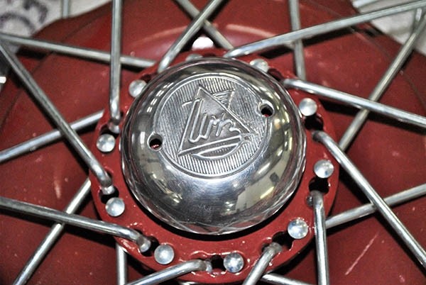 В Вишневый цвет выкрашены также колесные обода и тормозные барабаны, которые удачно выделяются и просматриваются сквозь спицы колес, напоминая старые спицевые колеся автомобилей типа Morgan.